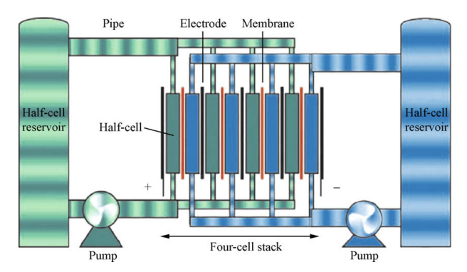此外,液流电池能量效率高达75%~80%,启动速度只需0.02s,且电池部件多为廉价的碳材料,无需贵金属作催化剂。