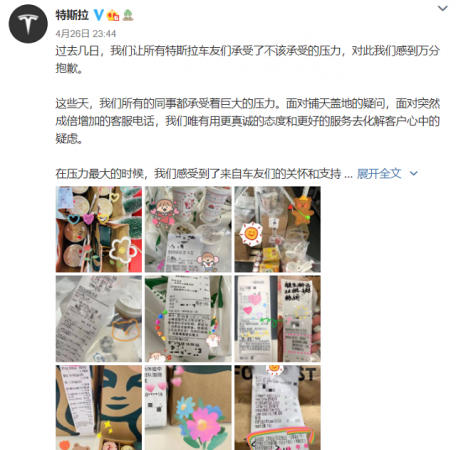 如今特斯拉在中国身处舆论漩涡,但却仍然获得了不少特斯拉用户的支持。在今天发布的公告中,特斯拉晒出了中国车友对特斯拉用各种方式表示关心的图片,并表示“会给关心特斯拉的所有人真诚的交代”。车友们点了奶茶和写了各种打气的小纸条,颇有点粉丝应援的意味,这也说明特斯拉的在中国的人气不是一时半会就会被消耗殆尽的。