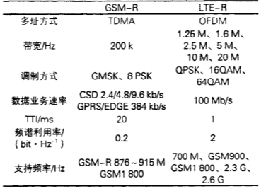 GSM-R与LTE-R技术参数比较